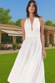 Elbise, modelin üzerindeki gibi S368 bedendir, ancak 135 cm ön boyu ile farklı beden seçeneklerine de uyum sağlar. 180 cm boyundaki mankenimizde mükemmel duruş sergileyen elbise, her vücut tipine uyum sağlayacak şekilde tasarlanmıştır. Günlük plaj kombinlerinizin yanı sıra, şık bir aksesuarla kombinleyerek akşam davetlerinde de kullanabilirsiniz. Plaj çantanız, şapkanız ve güneş gözlüğünüzle mükemmel bir yaz kombinasyonu yaratabilirsiniz.