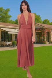 Mihrim Butik Askılı Yırtmaç Detaylı Yazlık Uzun Elbise Haki