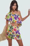 Bu muhteşem yazlık plaj takımıyla kendinizi tropik bir cennette hissedeceksiniz! Tek omuzlu, fırfırlı bluz ve mini etekten oluşan bu şık takım, %50 viskoz ve %50 pamuk karışımı dokuma kumaşından üretilmiştir. Nefes alan ve yumuşak yapısıyla gün boyu konfor sunarken, canlı tropikal desenleri ise yazın enerjisini yansıtır. Oversize kalıbıyla vücudunuzu saran bu takım, rahatlığı ve şıklığı bir araya getirir. Carmen yaka detayı ve kolsuz tasarımıyla sıcak yaz günlerinde serinlemenizi sağlar. Kısa boyu ve plaja uygun tasarımıyla tatilinizi stil sahibi bir şekilde geçirmenizi sağlayacak. Etek, katlı yapısıyla hareketli ve dinamik bir görünüm sunar. Astarsız yapısıyla hafif ve serin kalmanıza yardımcı olur. Makinede 35 derecede yıkanabilir özelliğiyle kolay bakım sağlar. 180 cm boyundaki mankenimiz S-36 bedenini tercih etmiştir ancak beden tablosu inceleyerek kendinize en uygun bedeni seçebilirsiniz. Her vücut tipine uygun olan bu takımla, plaj şıklığınızı tamamlayın!