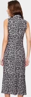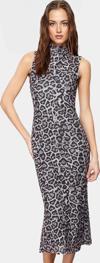Ersefa Yazlık Kolsuz Bodycon Kalem Elbise Dik Yaka Leopar Desenli Midi Boy Polyester Zarifane Tasarım