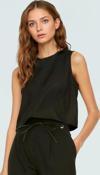 Bu şık ve rahat kolsuz crop bluz, yaz aylarında şıklığı ve konforu bir arada sunmak için tasarlandı. Hafif ve nefes alan polyester dokuma kumaşıyla gün boyu serin ve özgür hissetmenizi sağlar. Bisiklet yakası ve regular kalıbıyla her vücut tipine uyum sağlar. Cepsiz tasarımıyla minimalist bir görünüm sunarken, haki rengi ile her kombininize uyum sağlayacak çok yönlü bir parça. Rahatlığı ve şıklığı bir araya getiren bu bluz, günlük kombinlerinizin vazgeçilmezi olacak. Kumaşın hafifliği ve nefes alabilir yapısı, yaz sıcağında bile konforlu bir deneyim sunar. Kısa boyu (crop) sayesinde yüksek bel pantolonlar veya eteklerle mükemmel bir uyum yakalar. Bu kolsuz bluz, günlük hayatta, arkadaş buluşmalarında, alışverişte veya yazlık bir akşam yemeğinde rahatlıkla kullanabilirsiniz. Basit ve şık tasarımı, minimal aksesuvarlarla da tamamlayabilirsiniz.