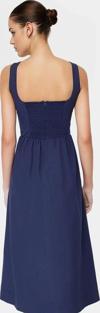 Bu kolsuz, midi boy elbise 176 cm boyundaki mankenimizde 36 beden olarak kullanılmıştır. Elbisenin ön boyu 122 cm'dir. 36-46 beden aralığında mevcuttur. Günlük kombinlerinizde rahatlıkla kullanabileceğiniz bu elbiseyi, spor ayakkabılar, terlikler, sandaletler veya topuklu ayakkabılar ile tamamlayabilirsiniz. Yaz aylarında plaj kombinlerinizde, akşam yürüyüşlerinizde veya arkadaşlarınızla buluşmalarınızda bu şık ve rahat elbiseyle her an harika görüneceksiniz.