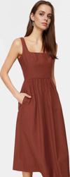 Bu kolsuz, midi boy elbise 176 cm boyundaki mankenimizde 36 beden olarak kullanılmıştır. Elbisenin ön boyu 122 cm'dir. 36-46 beden aralığında mevcuttur. Günlük kombinlerinizde rahatlıkla kullanabileceğiniz bu elbiseyi, spor ayakkabılar, terlikler, sandaletler veya topuklu ayakkabılar ile tamamlayabilirsiniz. Yaz aylarında plaj kombinlerinizde, akşam yürüyüşlerinizde veya arkadaşlarınızla buluşmalarınızda bu şık ve rahat elbiseyle her an harika görüneceksiniz.