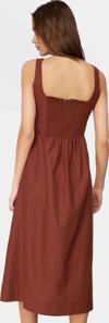 Yazın sıcağında serin ve şık görünmek mi istiyorsunuz? Bu ekru renkli midi boy elbise tam size göre! Nefes alabilen poplin kumaştan üretilen elbisemiz, gün boyu konfor sunuyor. Belden açılan eteği ile hareket özgürlüğünüzü kısıtlamadan şıklığınızı tamamlamanızı sağlıyor. Minimalist tasarımı ve kolsuz modeli ile her mevsim kombinlerinize uyum sağlıyor. Günlük stilinize şık bir dokunuş katmak için ideal olan bu elbiseyi, sandaletleriniz ve hasır çantanız ile tamamlayabilirsiniz. Sıcak yaz günlerinde rahat ve şık bir seçenek arayanlar için mükemmel bir seçimdir.