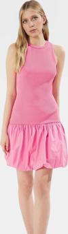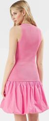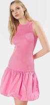 Bu nefes kesici pembe mini elbise, yaz akşamlarının vazgeçilmezi olacak! Triko kumaşın yumuşak dokusu ve rahat kalıbıyla gün boyu konfor sunarken, balon etek detayı ve dik yakasıyla şıklığınıza şıklık katacak. Hem günlük hem de özel davetleriniz için ideal olan bu elbise, stilinizi tamamlayacak mükemmel bir parça.