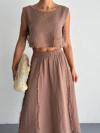 Hafifliği ve doğal yapısıyla öne çıkan müslin kadın etek, yaz aylarında vazgeçilmeziniz olacak.