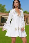 PayBuy Yazlık Plaj Elbisesi V Yaka Dantelli Uzun Kollu Pamuklu Mini Elbise Kaliteli İşçilik Rahat Kullanım