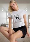 Yaz aylarında ev konforunu en üst seviyeye taşıyacak bu pijama takımı, hem şık hem de rahat bir deneyim sunuyor. Kedi ve kurdele figürlü beyaz tişört ve siyah şort kombinasyonu, modern ve sade bir tarzı yansıtıyor. Nefes alan, yumuşak ve hafif viskoz kumaş yapısıyla gün boyu konfor sağlar. %96 viskoz ve %4 elastan karışımı, esnek yapısı ile hareket özgürlüğü sunar. Regular kalıbı farklı vücut tiplerine uyum sağlar.
