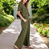 Yazlık Rahat V Yaka Keten Takım