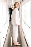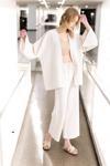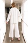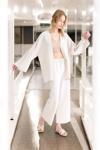 kadın Beyaz Çizgili Yırtmaçlı Esnek Uzun Örme Elbise - Image 1