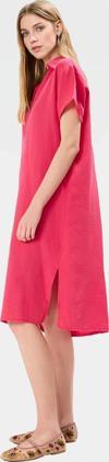 Dokuma müslin kumaşının hafif ve yumuşak dokusu teninize nazikçe dokunur. Shift kalıbı, vücut hatlarınızı zarifçe sarar ve size özgürlük verir. Kısa kollu ve gömlek yakalı tasarımı şıklığı tamamlar. Midi boyu ise hem modern hem de zamansız bir görünüm sağlar. Elbisenin ön boyu 110 cm'dir. Pratik bakım için makinede yıkanabilir.