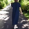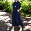 Yazlık Tam Boy Rahat Gömlek Yaka Keten Elbise