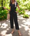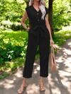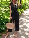 Barbora Keten Kadın V Yaka Tek Sıra Düğmeli Kolsuz Tulum