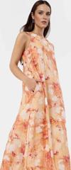 100% polyester kumaşın yumuşak dokusu, gün boyu konforlu bir kullanım sağlar. Düz kesim modeli, her vücut tipine mükemmel uyum sağlarken, tropikal desenleri ise şık ve modern bir görünüm yaratır. Maxi boyu, uzun bacakları olanlar için ideal bir seçenekken, kısa boylu kişiler için de stilinizi tamamlayacak bir uzunluktadır. Elbisenin bisiklet yakası, boyun bölgenizi serin tutarken, kolsuz tasarımı ise sıcak havalarda serin kalmanıza yardımcı olur.