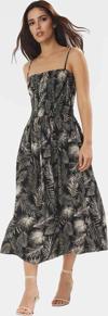 PayBuy Yazlık Tropikal Desenli Viskoz Midi Elbise Kare Yaka Gipeli Özenle Seçilmiş Profesyonel Görünüm