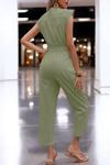 Yazlık V Yaka Kolsuz Rahat Keten Tulum - Image 1