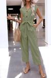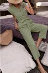 Barbora Keten Kadın V Yaka Tek Sıra Düğmeli Kolsuz Tulum