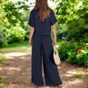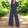 Barbora Yazlık V Yaka Rahat Keten Takım
