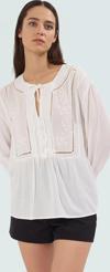 Yaz aylarının sıcak günlerinde serin ve şık kalmanıza yardımcı olacak bu beyaz bluz, gardırobunuzun vazgeçilmezi olacak! Hafif ve nefes alan viskon crinkle dokusuyla gün boyu rahatlık sunarken, zarif nakış detayları ve balon kollarıyla da tarzınızı yansıtacak. Bisiklet yakasıyla rahat bir kullanım sağlayan bluz, günlük kombinleriniz için ideal. Pamuklu kumaşıyla yumuşak dokusuyla teninize nazikçe dokunacak. Regular kalıbıyla her vücut tipine uyum sağlar. Uzun kollara sahip olan bluz, incecik kumaşından dolayı yazın bile serin kalmanıza yardımcı olacak. Hem şık hem de rahat bir görünüme kavuşmak için bu bluzu kot şort, etek veya pantolonlarınızla kombinleyebilirsiniz. İş yerinde rahatlıkla kullanabileceğiniz gibi, arkadaşlarınızla buluşmalarınızda da tercih edebileceğiniz bir ürün. Makinede yıkanabilir özelliğiyle de pratik bir kullanım sunuyor.