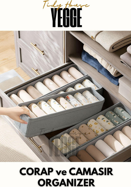 4 adet katlanabilir çorap ve çamaşır organizeri ile evinizdeki düzeni kolayca sağlayın.
