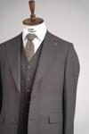 Erkek Gri Poliviskon Trend Yelekli Ekoseli Slim Fit  Sivri Yaka Takım Elbise - Image 1