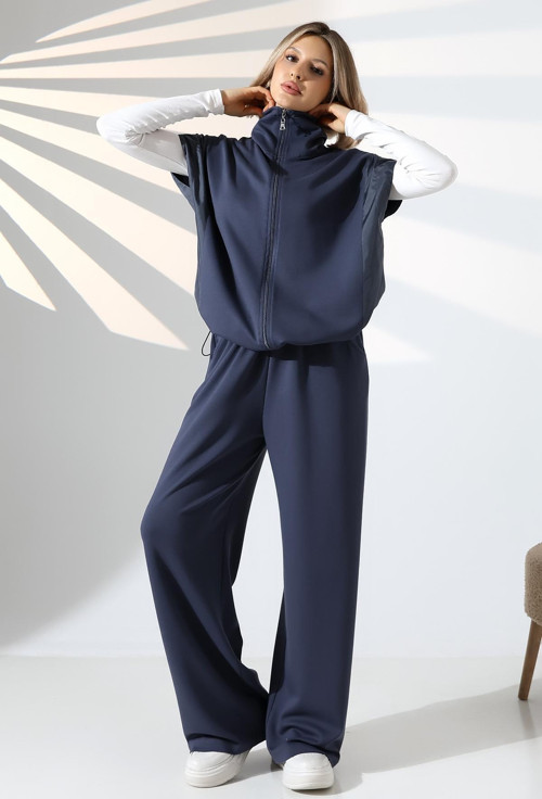 Yakamel Kadın 3 İplik Çımalı Bomber Ceket Eşofman Takımı