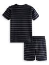 Erkek çocuk için çizgili, siyah pijama takım. %100 pamuklu. Kısa kol, bisiklet yaka. Üzeri yelkenli baskılı. Takımın alt parçası rahat şort şeklinde tasarlanmıştır. Tüm Denokids ürünleri Avrupa standartlarında "Çocuk Güvenliği Kuralları" gözetilerek üretilmiştir. İğne dedektörlerinden geçirilmiştir.