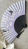 Yelpaze Mor Sakura Çiçekli Kumaş Bambu Yelpaze