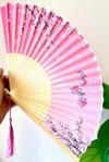 Yelpaze Pembe Beyaz Bambu Kumaş