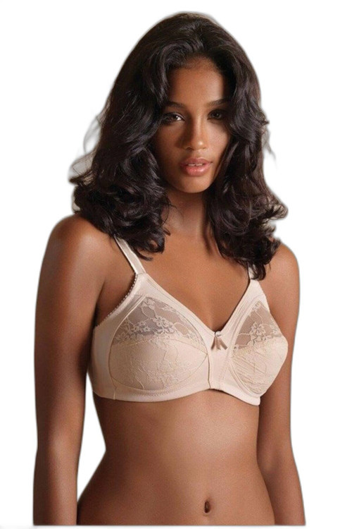 İç kısmı pamuk, dantelli telsiz süngersiz toparlayıcı sütyen. %47 polyamid %20 pamuk %18 polyester %15 elastan