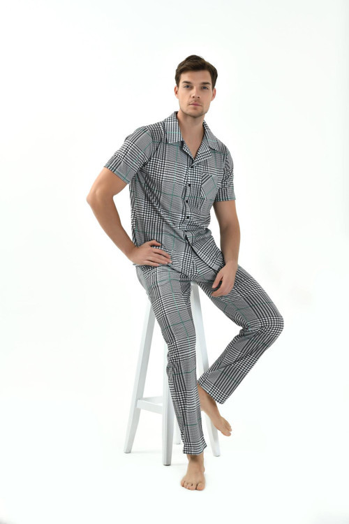 Kutu içerisinde 1 adet yarım kol önden düğmeli üst pijama, 1 adet şort, 1 adet uzun alt pijama vardır.