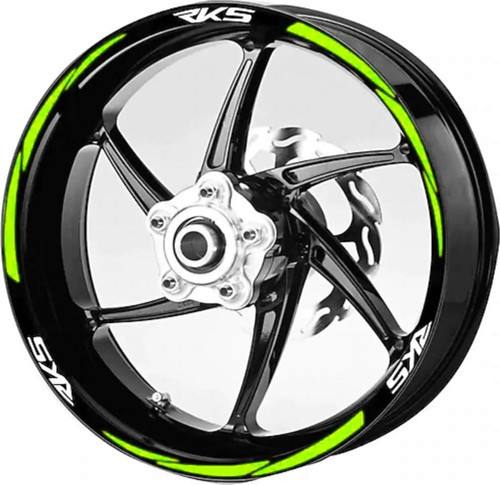 Motosiklet Jant Şeridi Rks Yazılı Fıstık Yeşili Reflektifli Fosforlu Sağ-Sol/Ön-Arka