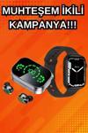 KULAKLIK:Dokunmatik kontrol özelliği sayesinde müziklerinizi ve çağrılarınızı kolayca yönetebilirsiniz. Dahili mikrofonu ile net görüşmeler yaparak, eller serbest deneyiminin keyfini çıkarın. Suya ve tere karşı dayanıklı yapısı sayesinde, spor aktivitelerinizde veya yağmurlu havalarda rahatlıkla kullanabilirsiniz. Çift telefon desteği ile iki cihaz arasında kesintisiz geçiş yaparak, bağlantıda kalın. Aktif gürültü engelleme (ANC) teknolojisi ile dış dünyanın gürültüsünü filtreleyerek, müziğinize tam odaklanabilirsiniz.AKILLI SAAT:Bu akıllı saat, modern teknoloji ile günlük hayatınızı kolaylaştıracak özellikleri bir araya getiren yenilikçi bir cihazdır. Tüm iOS ve Android akıllı telefonlarla uyumlu olan bu saat, geniş bir kullanıcı kitlesine hitap eder. Siri sesli asistan desteği sayesinde sesli komutlarla işlemlerinizi hızlıca gerçekleştirebilirsiniz. Bluetooth bağlantısı aracılığıyla çağrı yapma, çağrılara cevap verme veya reddetme, sık görüşülenler listesini yönetme, çağrı geçmişini görüntüleme ve arayan kimliğini görme gibi birçok özelliği destekler. Ayrıca, SMS ve diğer uygulamalardan gelen bildirimleri görüntüleme ve okuma imkanı sunar.44 mm paslanmaz çelik kasası, dayanıklılığı ve şıklığı bir arada sunar. 240x285 piksel çözünürlükteki, köşeden köşeye tam gelişmiş dokunmatik OLED ekranı, parlak ve net bir görüntü deneyimi sağlar. 280 mAh Li-Po bataryası, uzun süreli kullanım sunarak gün boyu yanınızda olmasını garanti eder. 128 MB bellek kapasitesi ve aktif iki yan tuşuyla kullanıcı dostu bir arayüz sunar.Sağlık ve spor odaklı özellikleriyle öne çıkan bu cihaz, günlük aktivitelerinizi ve sağlık durumunuzu takip etmenize yardımcı olur. Pedometre özelliğiyle egzersiz süresi, kat edilen mesafe ve yakılan kalori gibi verilere ulaşabilirsiniz. EKG, kan basıncı, tansiyon ölçümü ve kandaki oksijen oranını ölçme gibi üçlü sağlık takibi özellikleri sayesinde sağlığınızı yakından izleyebilirsiniz. Uyku takibi, hava durumu, kronometre, alarm, çağrı hatırlatma, hareketsizlik ve su içme hatırlatmaları gibi işlevlerle hayatınızı kolaylaştırır.Spor severler için, koşu, bisiklet, kuvvet antrenmanı, basketbol, tenis, voleybol ve futbol gibi çoklu spor modları sunar. Veri (DATA) sekmesi sayesinde günlük ve anlık sağlık verilerinizi analiz edebilirsiniz. Uygulama üzerinden sınırsız saat kadranı seçebilir ve ekranınıza dilediğiniz fotoğrafı yerleştirebilirsiniz. Akıllı bileklik hareket sensörü, ekranın kolayca açılıp kapanmasını sağlar.10 kişiye kadar hızlı arama özelliği, değiştirilebilir kordon seçeneği ve Türkçe dahil 23 farklı dil desteğiyle kişiselleştirilebilir bir deneyim sunar. Uçak modu ve rahatsız etme modu gibi işlevlerle kullanımınızı daha verimli hale getirebilirsiniz. Saat üzerinden müzik dinleme, uzaktan fotoğraf çekme gibi eğlenceli özellikler de cihazın dikkat çeken detayları arasındadır.Şıklığı, dayanıklılığı ve fonksiyonelliği bir araya getiren bu akıllı saat, hem teknoloji tutkunları hem de aktif bir yaşam tarzını benimseyen kullanıcılar için mükemmel bir tercihtir.