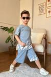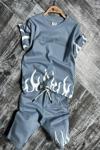 Yeni Sezon Alev Desenli Mavi Renk Erkek Çocuk Şortlu Takım