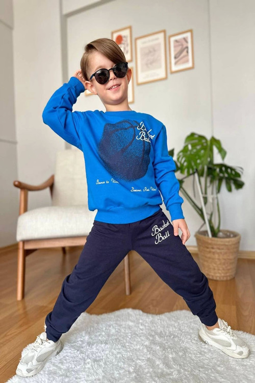 Yeni Sezon Basket Ball Desenli Mavi Renk Erkek Çocuk Takım