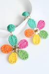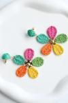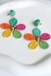 Leostone Yeni Sezon Çok Renkli Hasır Çiçek Tasarım Sallantılı Yazlık Hafif Kadın Küpe