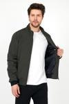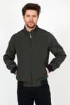 Sivaist Yeni Sezon Erkek Yeşil Mevsimlik Triko Ve Deri Biye Detaylı Fermuarlı İç Cepli Mont&Ceket