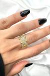 Yeni Sezon İkili Trapez Taşlı Tasarım Model Ayarlanabilir Kadın Çelik Yüzük