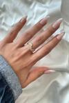 Skygo Pirinç Ayarlamalı Gümüş Renk Zirkon Taşlı 2li Görünüm Fiyonk Yüzük - TJ-BYK3288