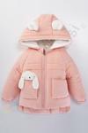 Bebek Vadisi YENİ Tavşanlı Fermuarlı İçi Peluş Kürklü Kalın Kapüşonlu Kar Şişme Kışlık Kız Bebek Mont Çocuk Kaban