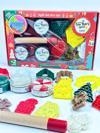 Set içeriğinde olanlar 4 adet 130gr oyun hamuru ; 1 kavanoz simli 3 kavanoz düz renkli 5 adet tutamaçlı damga + 5 adet kesici kalıplar 1 adet kırmızı uçlu ahşap oklava