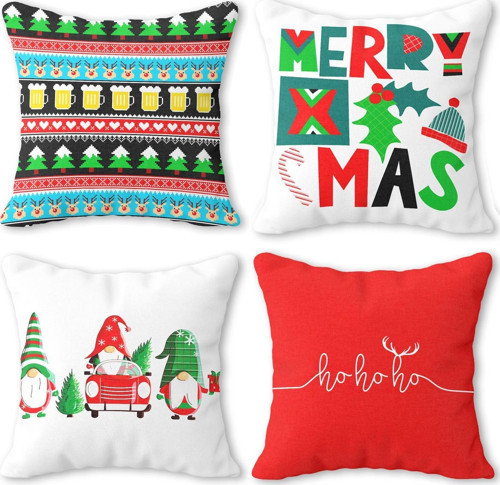 Yeni Yıl Temalı Kırlent Yastık Kılıfı 4'lü Kombini Renkli YYKRL13