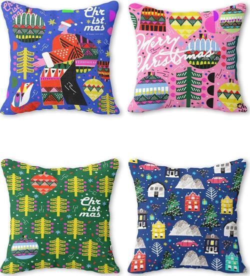 Yeni Yıl Temalı Kırlent Yastık Kılıfı 4'lü Kombini Renkli YYKRL19