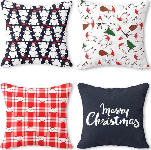 Yeni Yıl Temalı Kırlent Yastık Kılıfı 4'lü Kombini Renkli YYKRL49