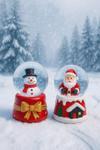 Yeni Yılın En Güzel Hediyesi Yılbaşı 2 Adet Led Işıklı 6,5 cm Noel Baba & Kardan Adam Kar Küresi Seti