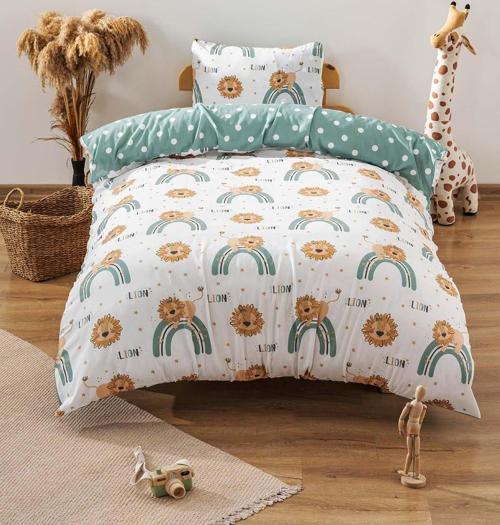 Yeşil Aslan Gökkuşağı Çift Taraflı Çocuk Nevresim Takımı Pamuklu