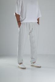 ErkekYeşil Çizgili Müslin Keten Baggy Pantolon