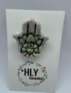 Yumuşak yeşil tonlarıyla sakinlik ve dengeyi, el formundaki detaylarla ise şans ve korumayı temsil eder.