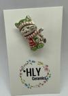 Yeşil ve kırmızının uyumunu taşıyan bu el yapımı seramik kedi, kış ruhunu neşeli bir biçimde yansıtır.