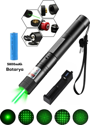 Yeşil Lazer Pointer 100 Mw 15 Km Etkili (5 Başlıklı) - Image 1